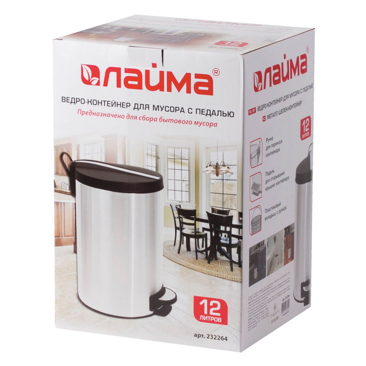 С вместимостью 12 литров, это ведро идеально подходит для помещений с средней проходимостью. Педаль облегчает открывание крышки, а плотное прилегание её к корпусу надежно удерживает запахи. Внутренний пластиковый контейнер снабжен удобной ручкой для легкого извлечения.